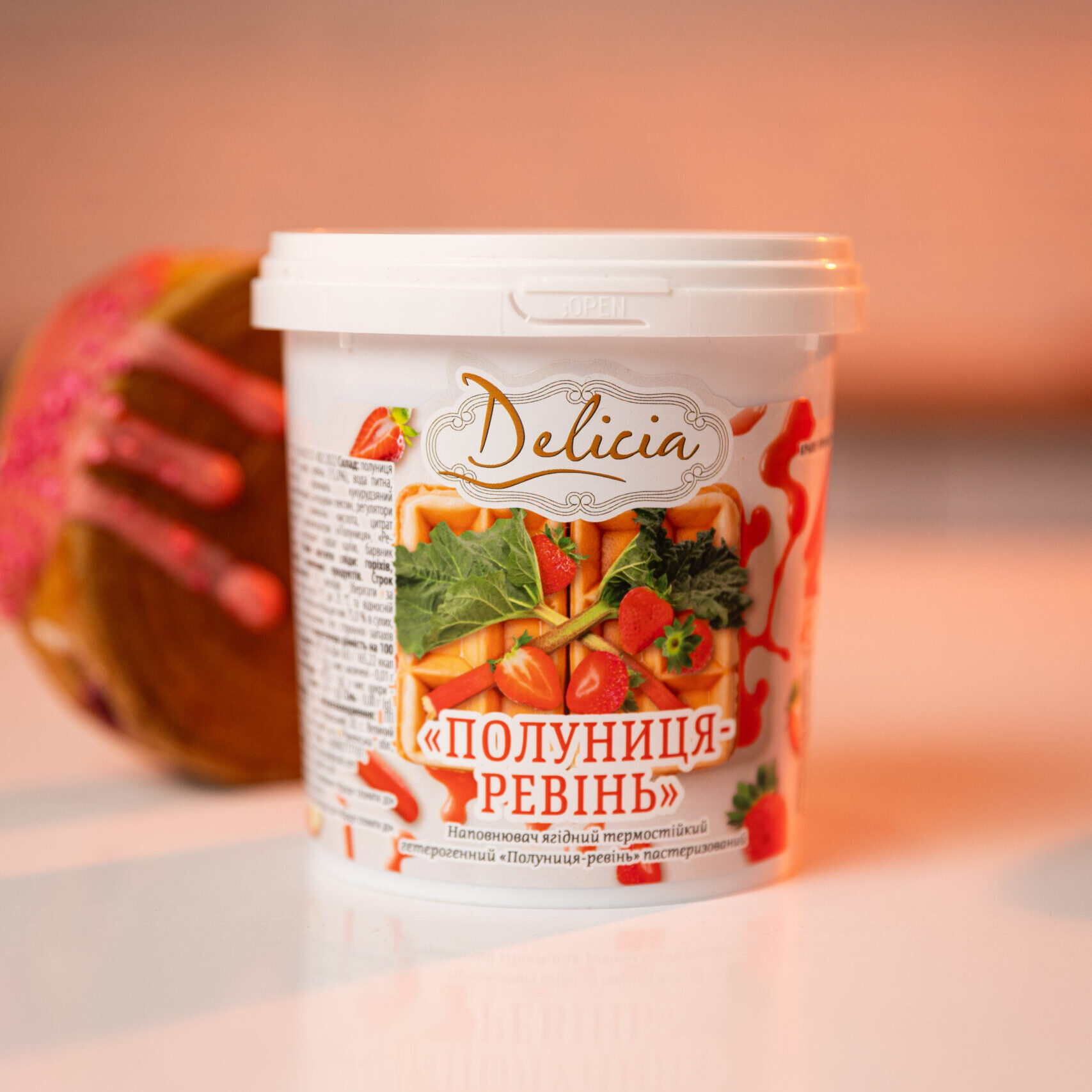 Термостабільний джем зі шматочками фруктів «Ружа» — оригінальне рішення для розширення асортименту ваших борошняних і кондитерських виробів. Завдяки натуральним стиглим яблукам у складі має надзвичайно приємний фруктовий смак, а пелюстки троянди створюють квітковий посмак та надзвичайний літній аромат з легкою терпкістю. Структура вишукана, неоднорідна завдяки шматочкам мʼякоті. Цей джем підходить як для відкритих, так і для закритих виробів, що підлягають випіканню або заморожуванню.