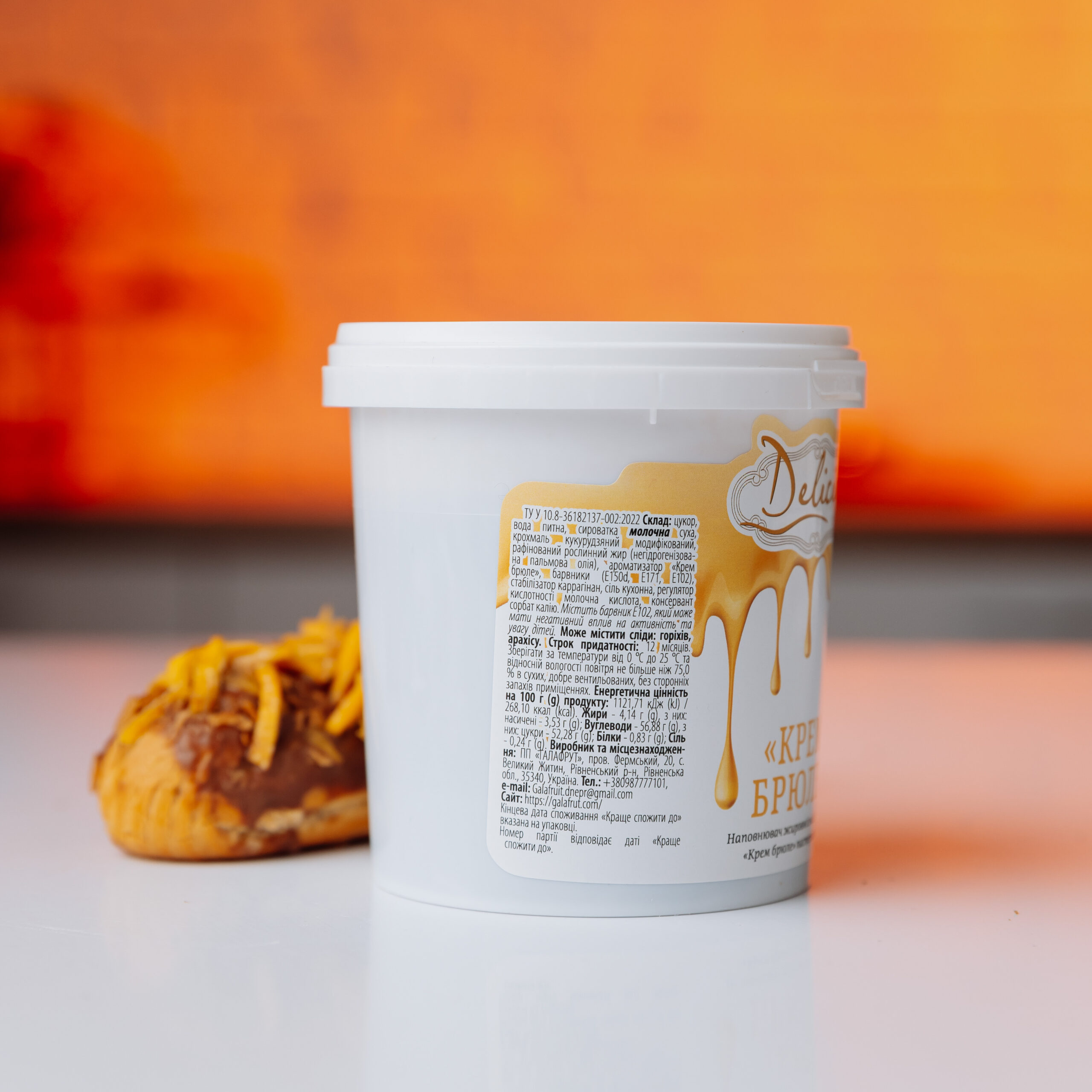 Наповнювач «Крем брюле» натхненний популярним десертом із заварного крему з хрусткою цукровою скоринкою, що поєднує смак крему й молока з вишуканим ванільним ароматом. Це готовий до вживання продукт з ніжною кремовою структурою, що широко використовується як начинка попередньо випечених виробів: пончиків, мафінів, круасанів, рулетів, різноманітних порційних десертів. Також наповнювач «Крем брюле» може використовуватися на виробництвах як крем для тортів і тістечок. Популярний в готельно-ресторанних закладах, є чудовим готовим рішенням для самозайнятих кондитерів.